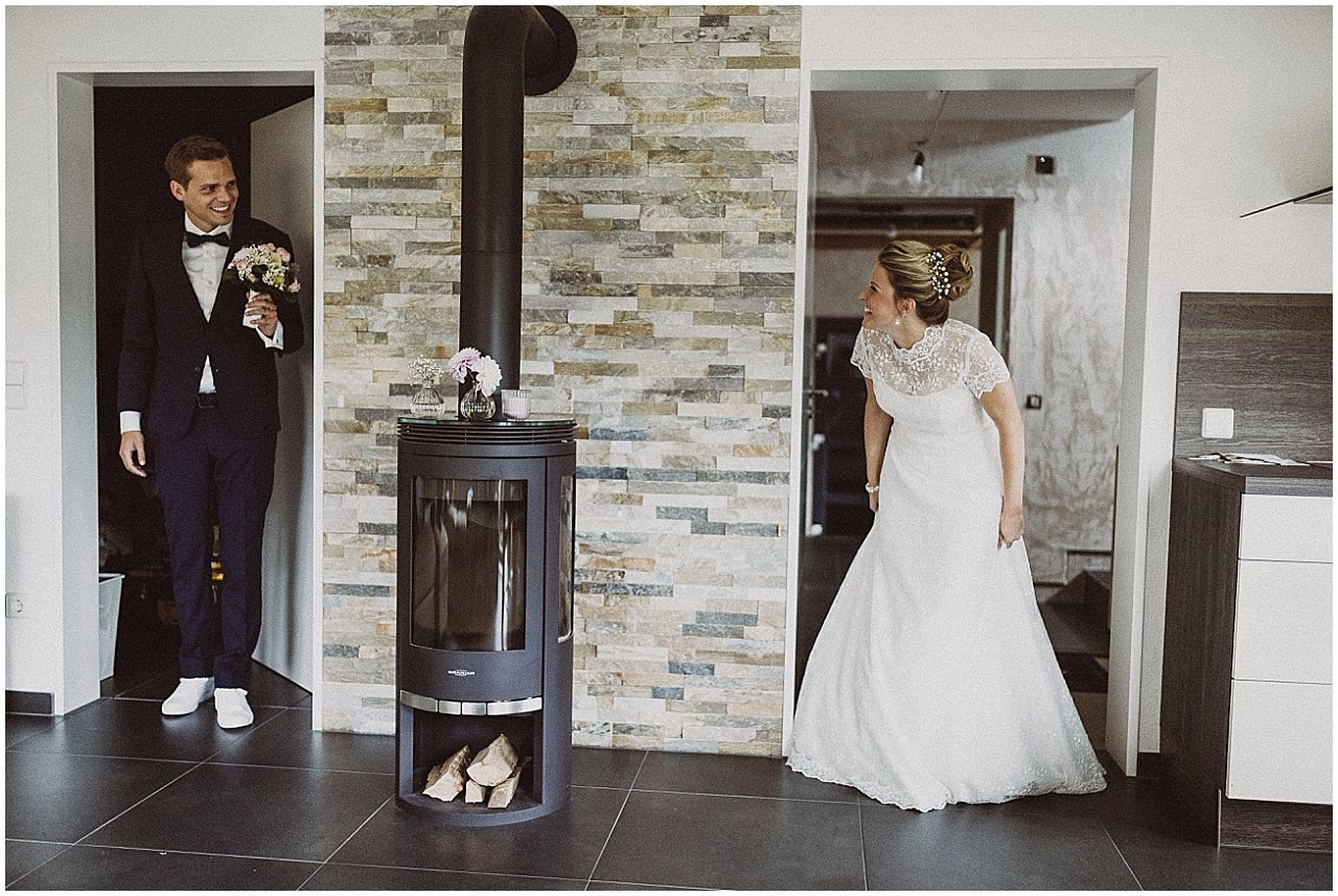 Wir haben Martin den ganzen Tag über gebucht, sodass Martin bereits beim getting ready dabei war, wobei unfassbar schöne und emotionale Bilder entstanden sind. Auf seine Empfehlung haben wir den first look zeitlich vor das Standesamt gelegt und das war die beste Entscheidung überhaupt; es hat uns so viel Stress und Anspannung genommen und vor allem hatten wir diesen Moment nur für uns allein. Martin war physisch zwar anwesend, hat uns aber zu keiner Zeit aufdringlich diesen besonderen Moment gestohlen.