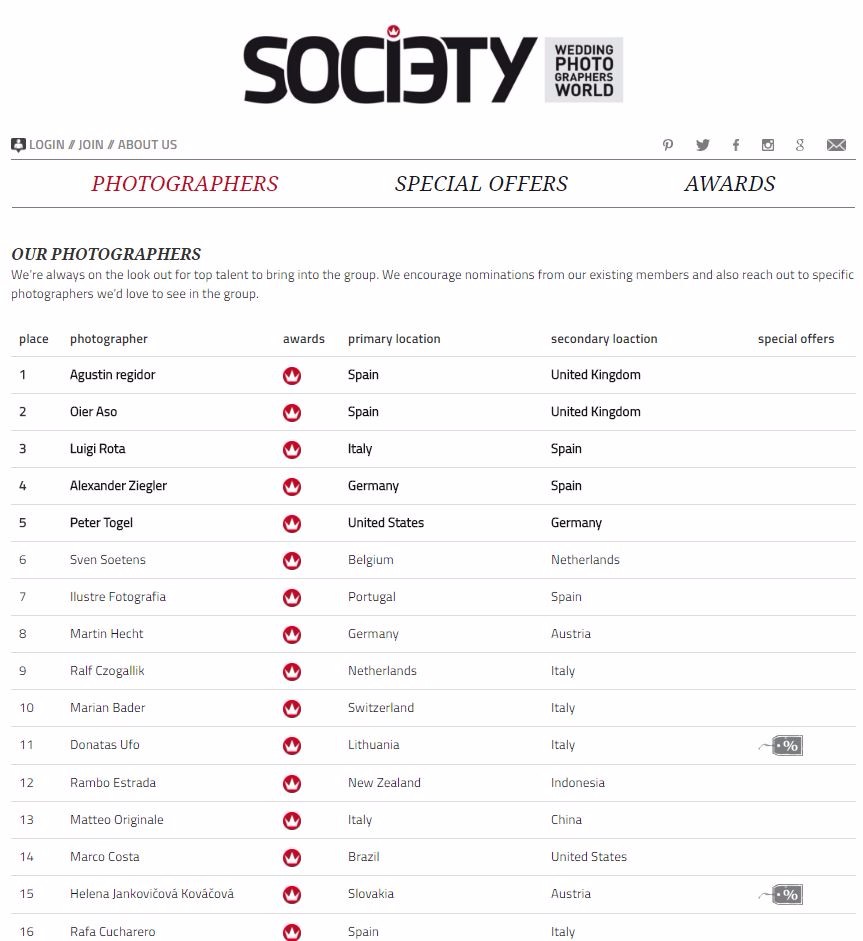 Heute habe ich gesehen dass ich bei Weddingphotographersociety auf Platz 8 der TOP 100 Fotografen international geführt werde. Geiles Gefühl…