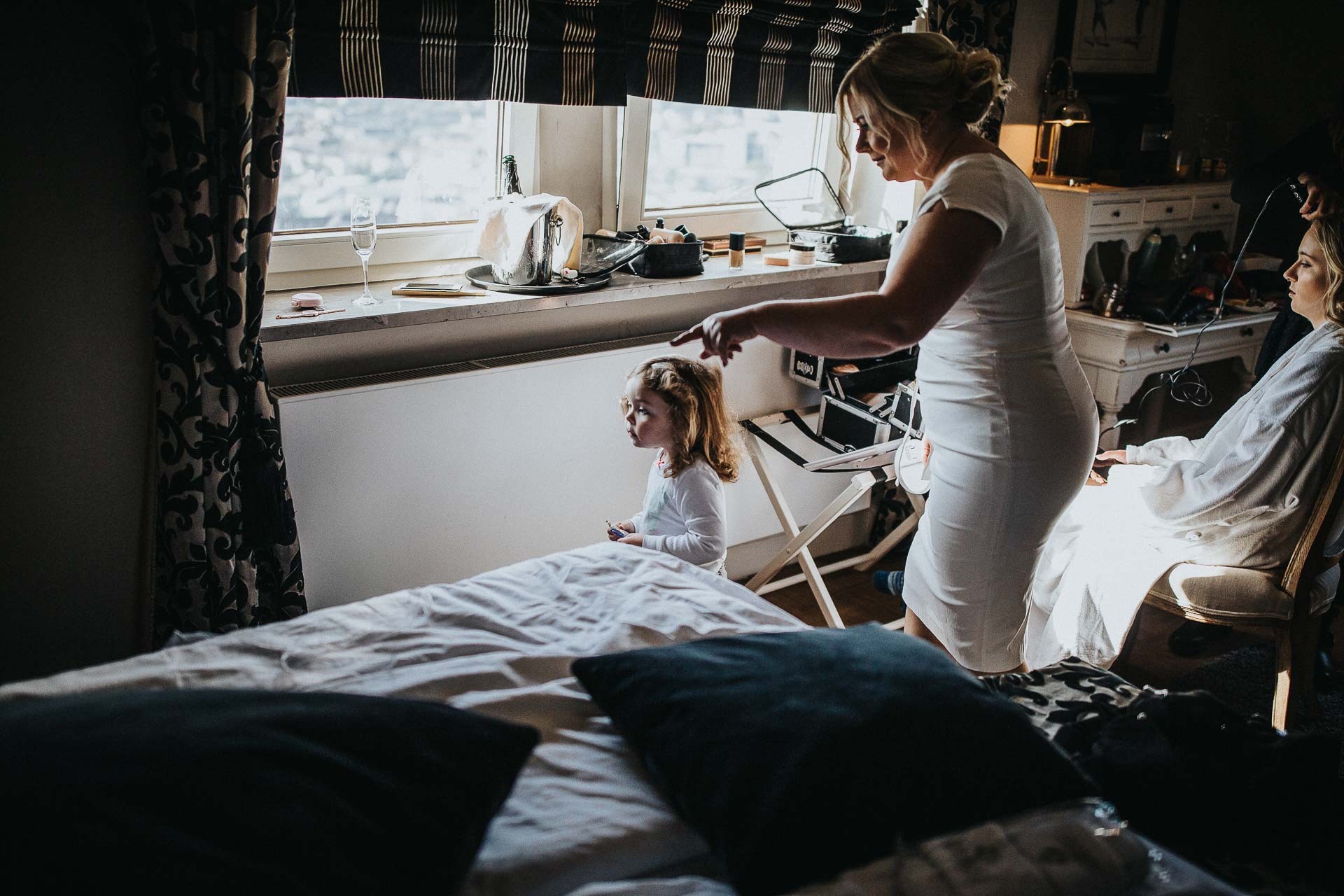 Tja, wie es so sein sollte, war ich der einzige beim Frühstück 😉 und nachdem ich dieses genossen hatte, ging es für mich auch schon nach oben. Nicole und unsere gemeinsame Tochter Annamarie wurden auf Ihrem Zimmer von Verena Emmel für diesen großen Tag geschminkt und bekamen die Haare gemacht.