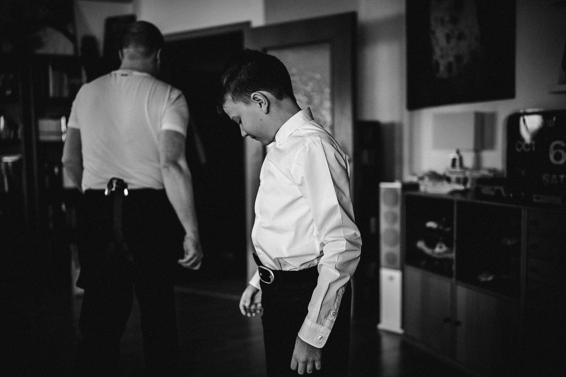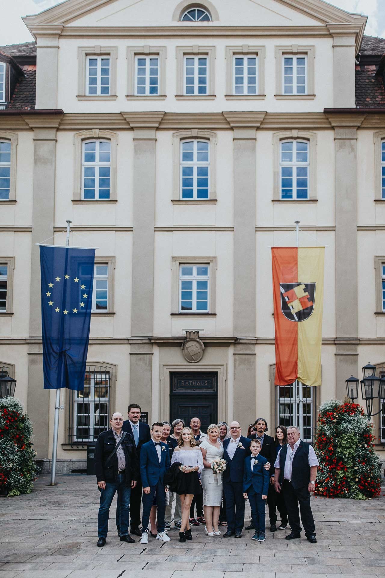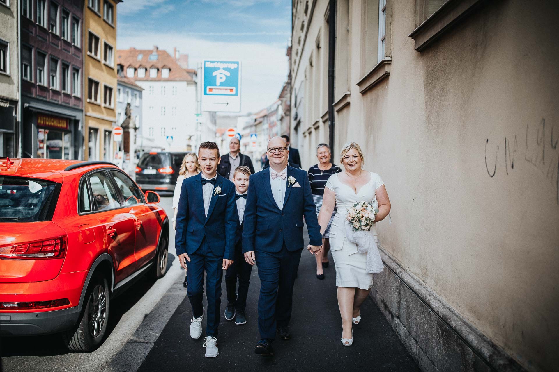 Irgendwann machte ich mich auf den Weg von der Steinburg aus zu den beiden nach Hause, hier richtete sich Thomas mit seinen beiden Jungs und warfen sich in Schale, bevor es auch für die 3 Männer auf die Steinburg ging, von wo aus sich eine kleine Delegation in Richtung Rathaus nach Würzburg begab. Denn hier fand die standesamtliche Trauung statt und anschließend gab es auf der alten Mainbrücke noch Bratwurst als Stärkung für den Rückweg auf die Steinburg.