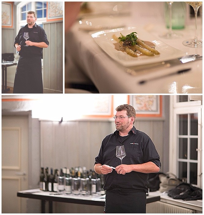 Bei der ersten Vorspeise machte das Weingut Aldinger aus Fellbach mit seinem 2014er Weißburgunder Gips trocken den Anfang (schade dass es nicht der Marienglas GG war – weil dieser passt durch seine noch ausgewogeneren Mineralien fast noch besser zu Spargel), die Weingärtner Cleebronn-Güglingen fuhren mit Ihrem Weißburgunder – Sank M. auf und Keller aus Rheinhessen mit einem 2014 Grüner Silvaner. Meiner Meinung war hier der von Aldinger die beste Wahl.
